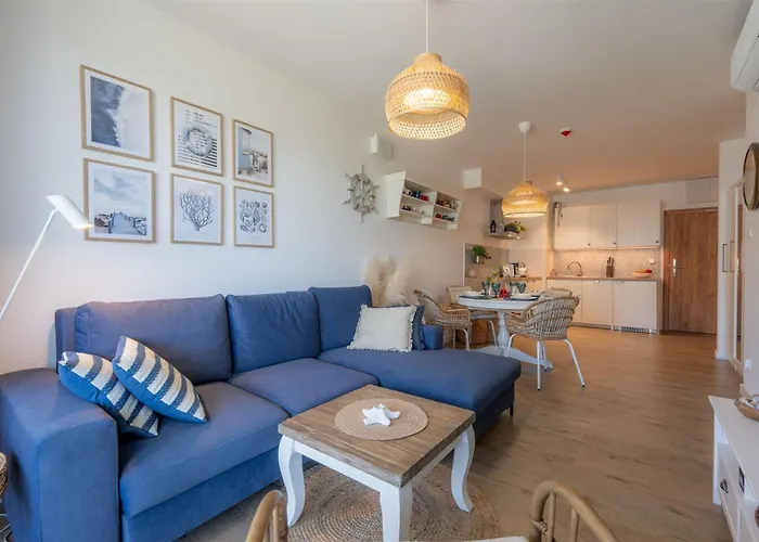 Boho - Apartament Nad Morzem W Kolobrzegu公寓坐落在Dzielnica Uzdrowiskowa区.走路只需7分钟即可到达GRIN bistro & cafe咖啡厅. 这套公寓距离科沃布热格码头仅2公里,设有小厨房和1间浴室.